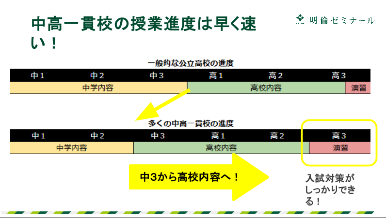 多くの中高一貫校では 中3生のうちには高校の履修内容に入っているからですね。