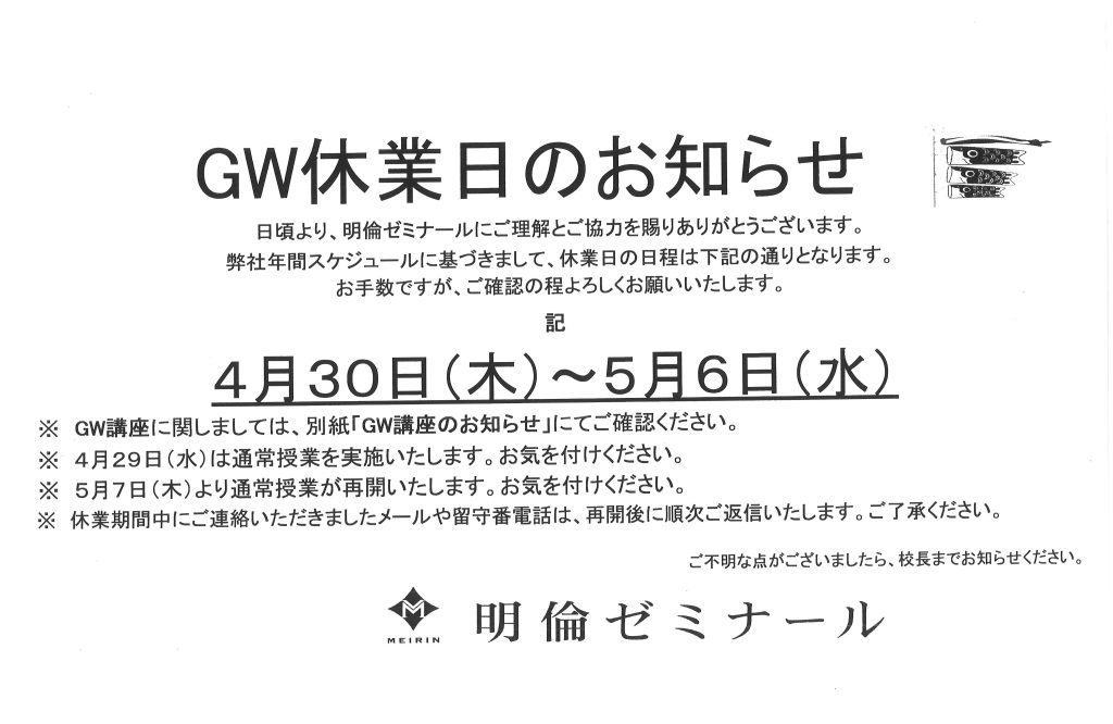 さて、当塾では下記の期間、GWのお休みをいただきます。