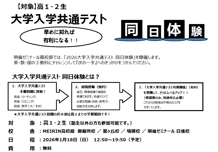 今年も共通テスト同日体験を実施します。
