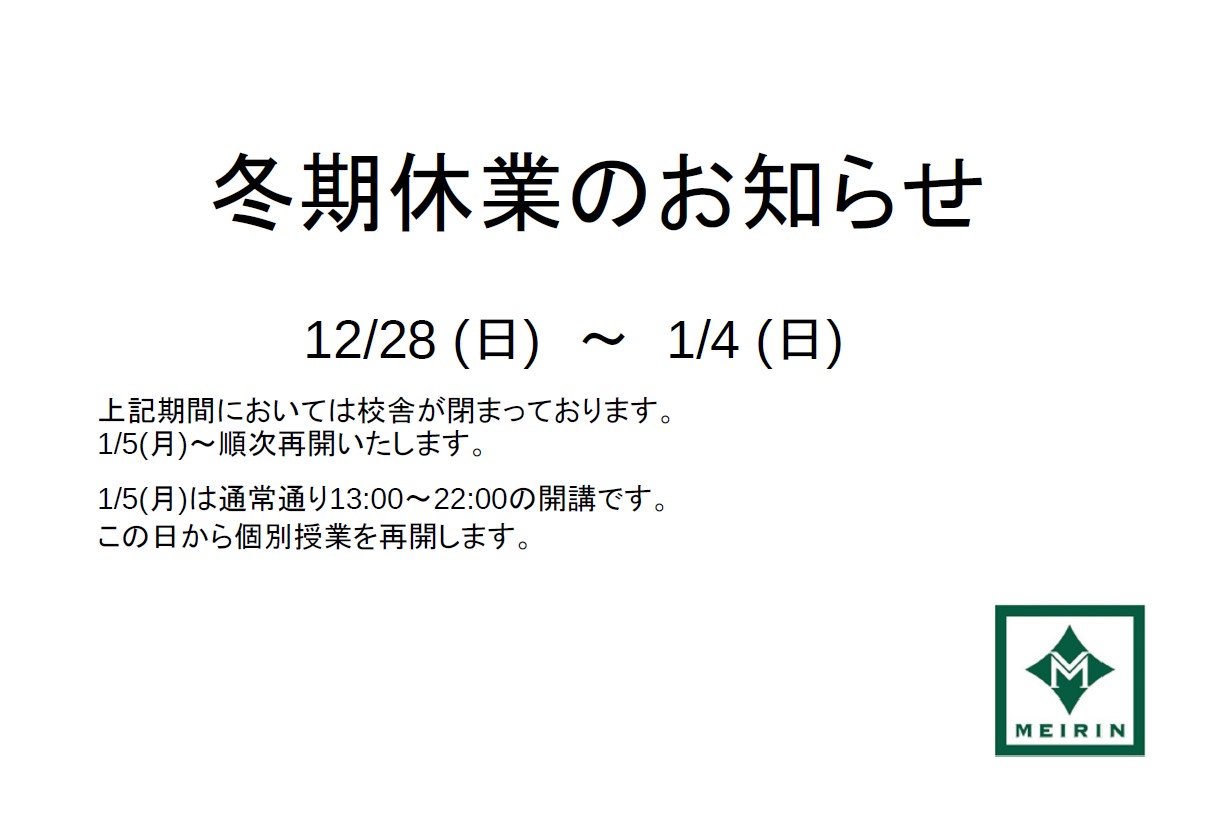 冬期休業についてお知らせいたします。
