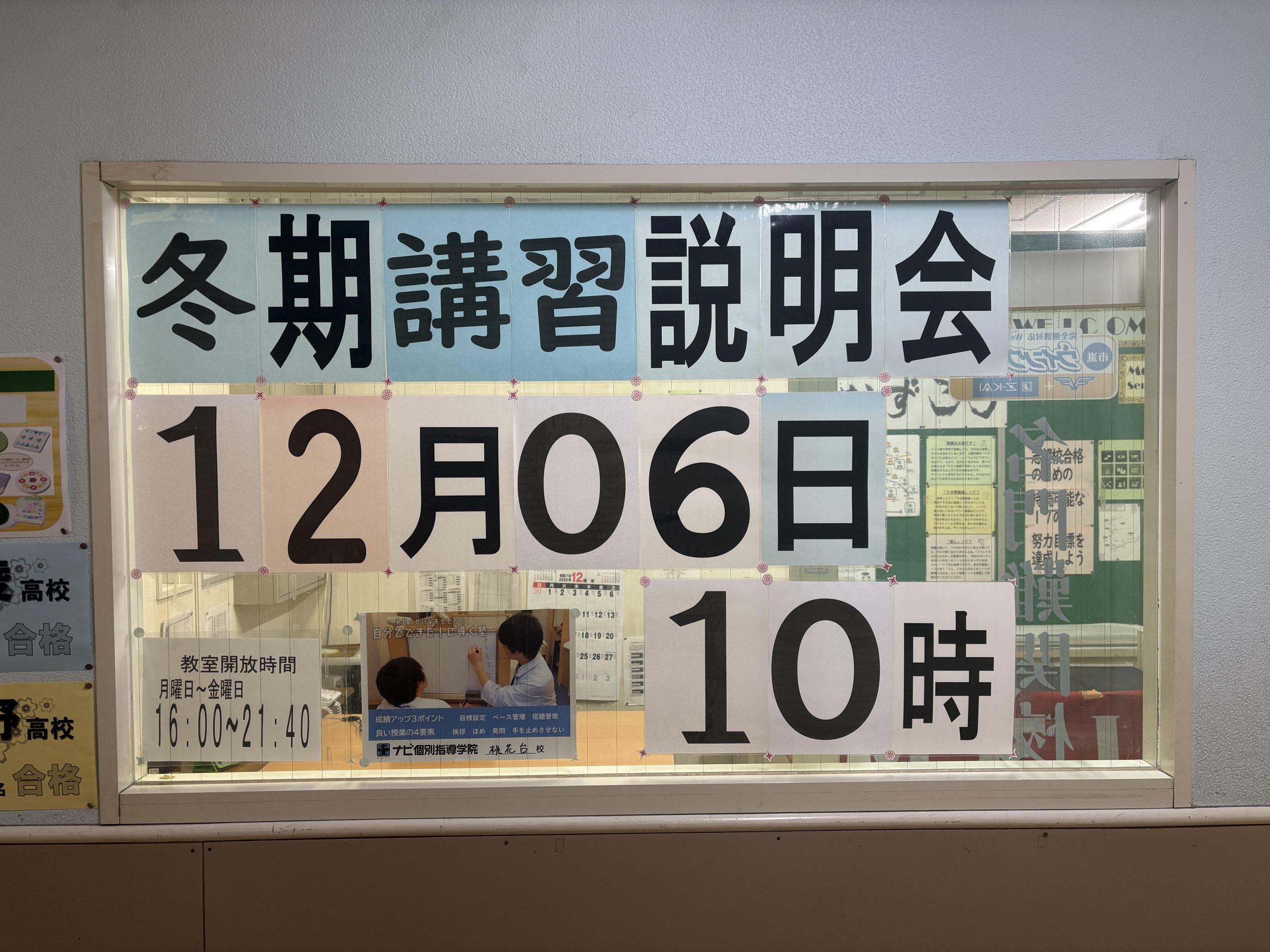 <冬期講習説明会日時>・12月6日(土)午前10時~午前11時