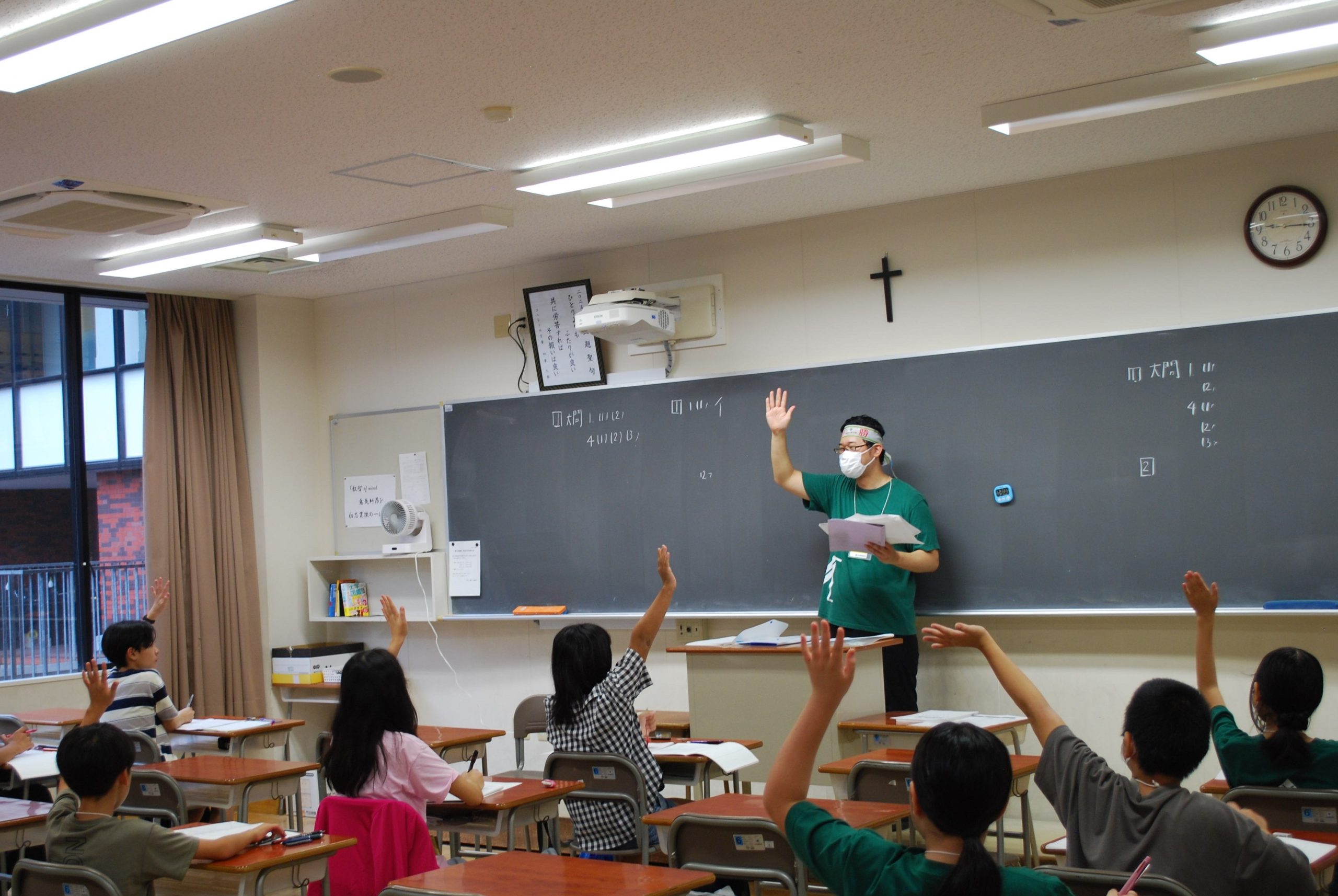 小学生は、名古屋中学校をお借りして、普段とは違う環境の中で入試に関連した内容での学習を行っています。