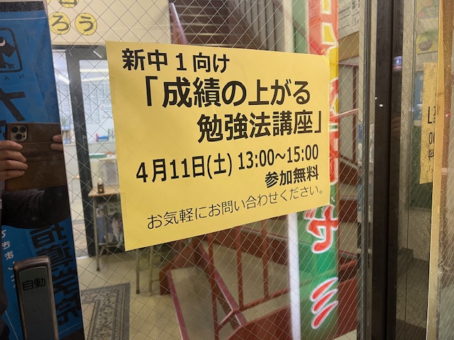 「成績の上がる勉強法講座」は、実際の勉強にすぐ役立つアドバイスを聞ける絶好の機会ですので、ぜひご参加ください。塾外の方の参加もお待ちしておりますので、お気軽にお問い合わせください。